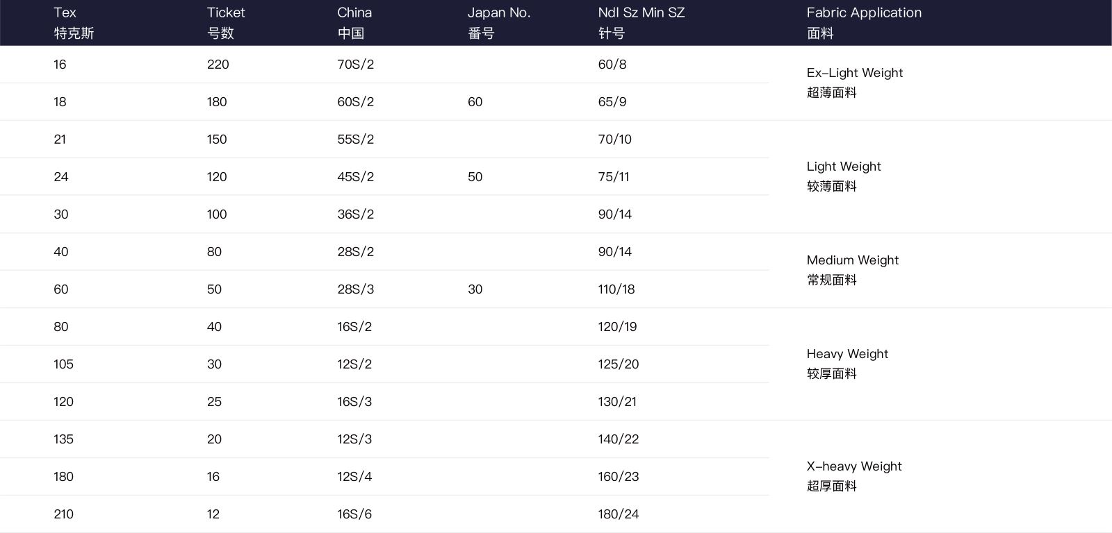 ·極好的耐磨性和接縫強度,極適用牛仔褲和高檔服裝的縫制