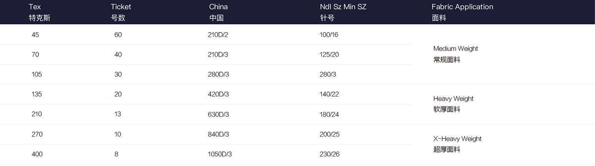 具有良好的耐磨性和卓越的接縫強度外,還有優越的縫紉性能,確保高速縫紉時的線跡穩定。